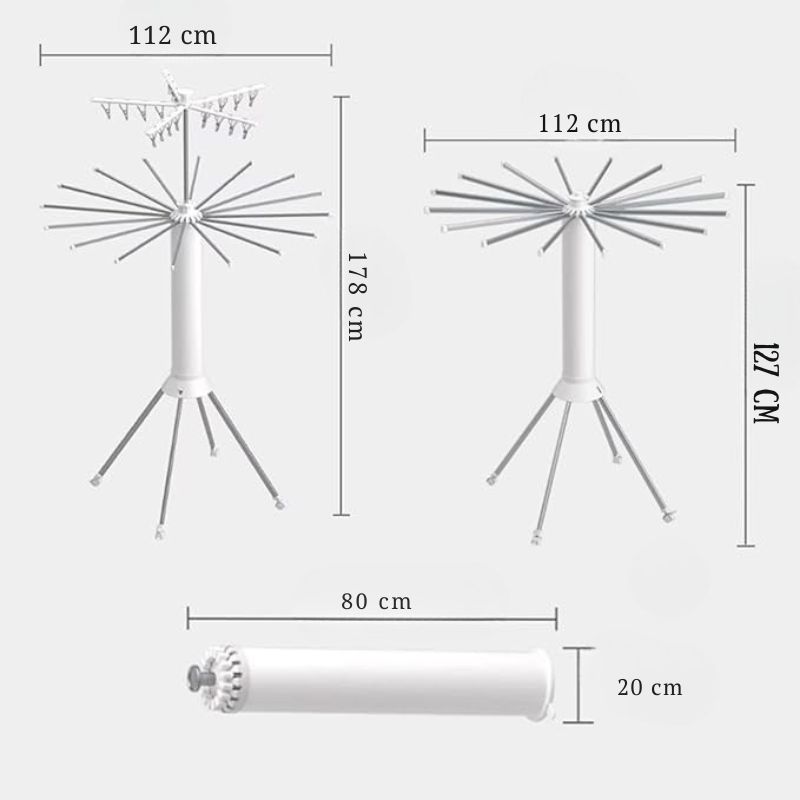 Design pliabil, economisitor de spatiu: Uscatorul atinge o inaltime de 178 cm in pozitie desfasurata, dar se pliaza compact la doar 79 x 18 cm, ideal pentru apartamente mici sau spatii fara uscator automat.