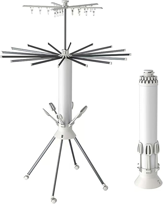 Uscator Vertical Pliabil pentru Haine si Incaltaminte, 3 Niveluri, 360°, cu Roti, Suport pentru Umerase, 20 Cleme, Cadru Metalic Stabil